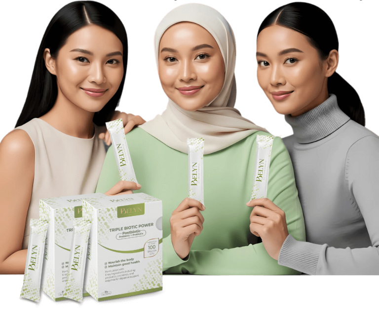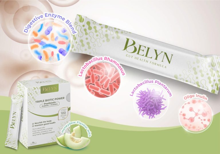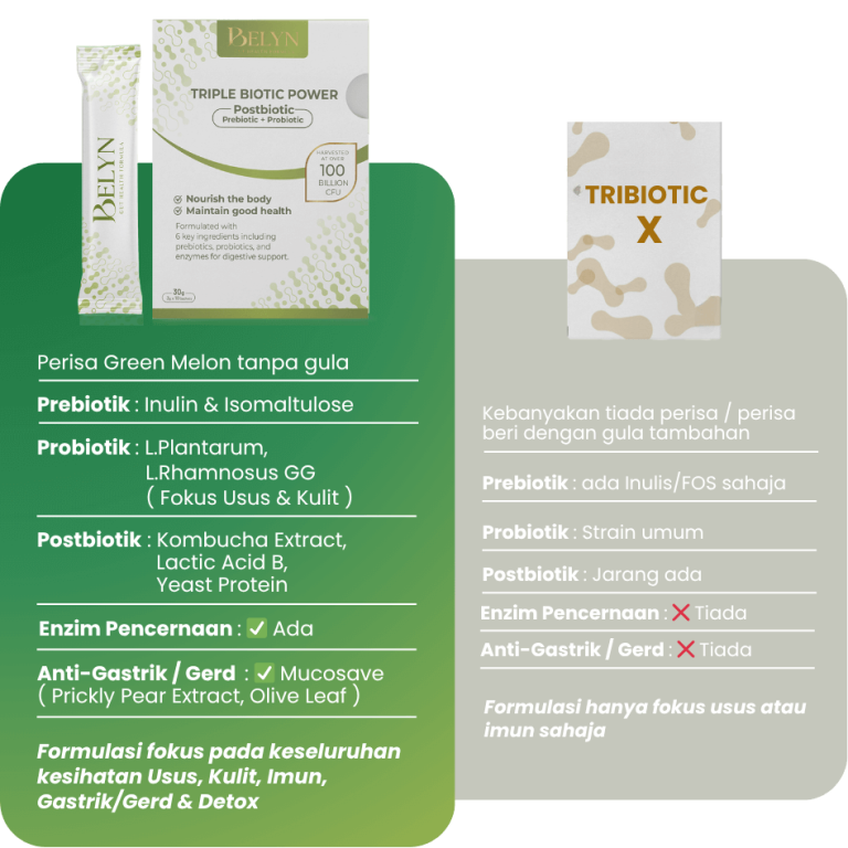 Belyn ni minuman serbuk tribiotic (prebiotik, probiotik & postbiotik) untuk bantu: